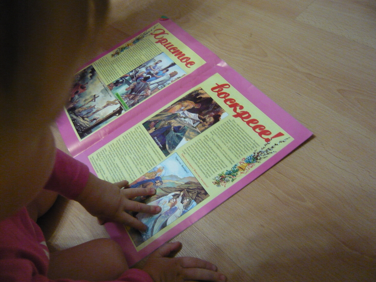 А вечером дети посмотрели журнал. Один из рассказов я прочитала деткам (как Иисус воскрес. И про Фому -с этого момента я узнала откуда пошло выражение "Фома неверующая"