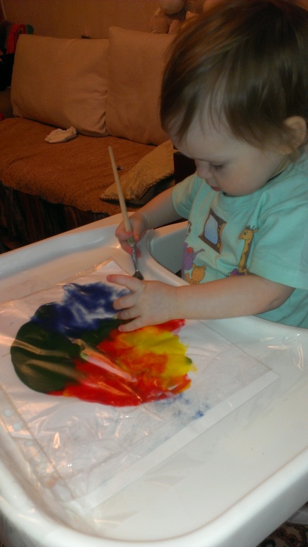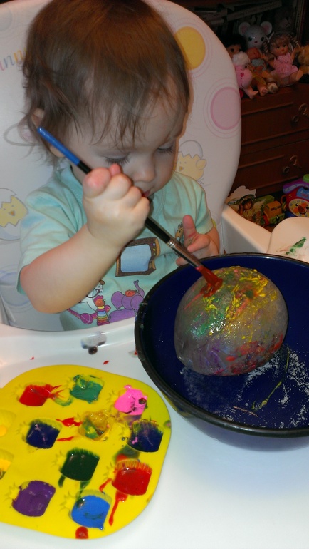 Класно! С файлом и льдом надо попробовать! Вообще у Темы пока краски не особо интерес вызвали. Крупы да!! Пластилин тоже, ковыряем, размзываем пальцами. спасибо за подсказочки ;)