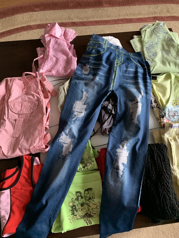 №6 цена 500₽ на рост 120-134 10 вещей+желтые лосины Laura Biagiotti отдам в подарок.