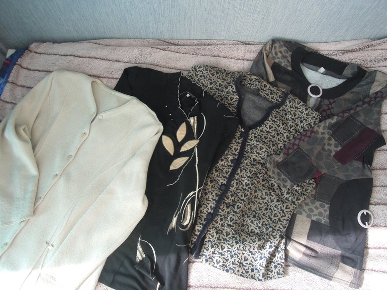 КОФТЫ :1слева ЭКВ 500 ,2 черная с листиками ЭКВ 400,3 черно-бежевая на пуговицах ЭКВ 300 ,5-я ЭКВ 300