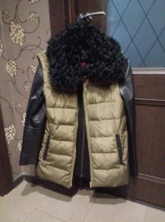Очень стильная,универсальная куртка-пуховик три в одной! Жилет на пуху с воротником их натурального меха, курточка-полупальто с кожаными рукавами, а если на куртку одеть жилет- пуховик. р.42-44.Состояние прекрасное. ЭКВ 6000 (Ц.5000)