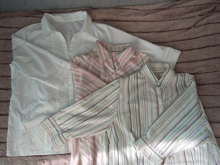 пожалуйста)Блузки:полосатые р.56-58 ЭКВ по 200,белая НОВАЯ ПРОДАНА