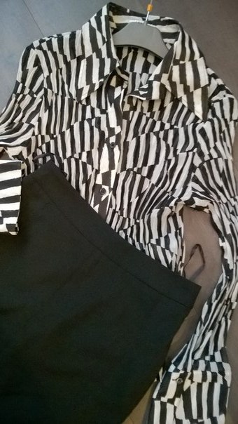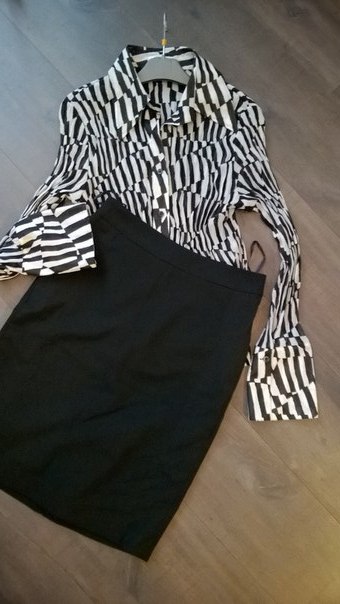 КОМПЛЕКТОМ:Блузка Ambiente США.р.44 юбка карандаш (М)44.Вещи в отличном состоянии, 1 раз б.у. ЭКВ 2500 (Ц 2000)![]()