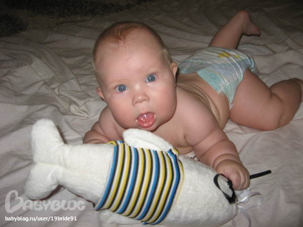 Итак, Аким на сегодняшний день 10700 г. 73 см. Пробуем всё по немногу кушать, пюрешки разные, творожок детский, супчики... но совсем немного... 2 чайных ложки максимум... А так, по прежнему, основное питание - грудное молочко. Сидит сам уже давно, уверенно. Не ползает совсем. Кроватку разлюбил свою, и теперь спим все вместе....