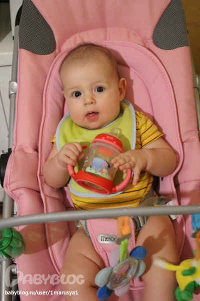 Пытается сесть.На кухне недавно в шезлонге (который на фотке) сидела..поворачиваюсь к ней, а она рукой дотянулась до дуги, схватилась , села и облизывает зеленую погремушку (на фото слева скраю).