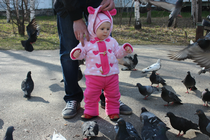 На улице любит птичек смоотреть, гонять. На площадке детской топаем за руки, к деткам подходит, руки вытягивает -обнимашки ))) Как то была девочка лет 10, так Нелли на руки просилась к ней -она взяла, и доча сидела довольная и смотрела на меня!!!!