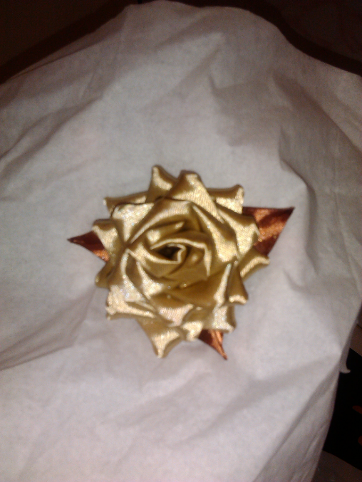 Но у меня к вам просьба, нам на праздник в конце апреля нужно сделать цветок учительнице на блузку.Она будет танцевать с детками, танец хомяков.Хотелось бы этот цветок сделать самой, но роза не совсем подходит, т.к. она элегантная.Помогите найти мастеркласс, по более пышным цветам.И какую ленту купть,чтобы цветок был объемным. У нас(в магазине)самая широкая лента 50см.Может можно использовать ткань?Цветок будет в желто оранжевом цвете.
