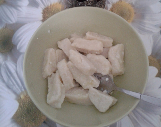Привет!!! Ну, дошли у меня руки до вареников))) Получились))) я б немного увеличила количество сахара) Очень сытные) выход по тесту примерно 1100гр. сделала двойную порцию, но это очень много... пришлось делить...и заморозить)))