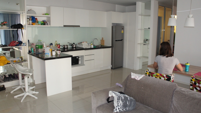 приехали в кв а там оказалось что не убрались и ждать на заселения еще 3 часа((((( Лера не понимала что происходит, и смотрела на все с большими глазами. И вот пришли к себе, наш вид из окна, вообще кондо понравилось, тихо и спокойно, мы жили в 2х ком. очень удобно, в разных концах комнаты и у каждой ком. свой туалет и ванна. мы не мешали друг другу вообще, зато дети утро на и вечером были счастливы что они вместе)))