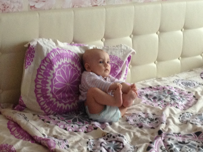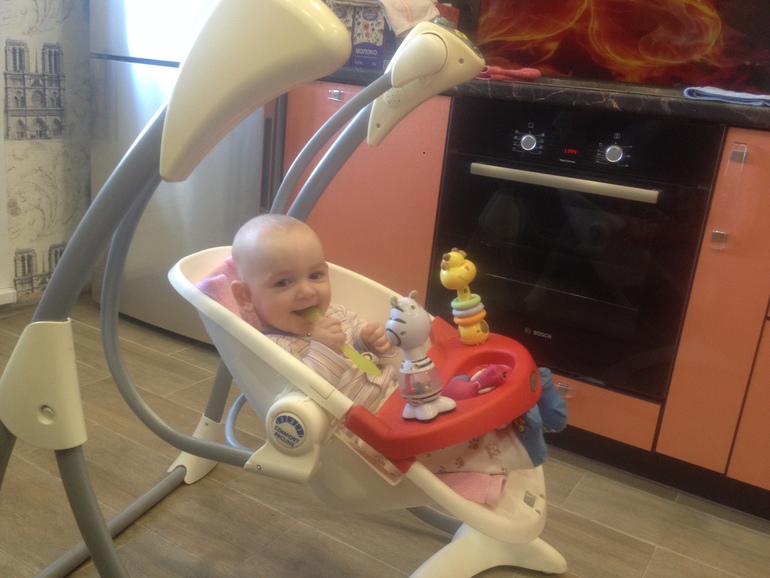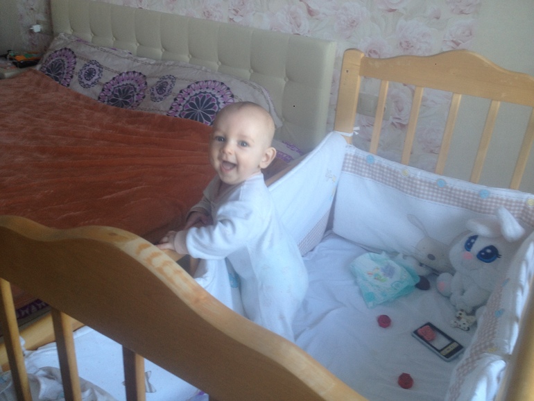 Ну и конечно сравниваю с дочкой в этом возрасте, Даша передвигалась по пластунски и я могла ее подушками на диване обложить и уйти на кухню . С Денькой это не пройдёт. Он сильнее. Он через всё проползет , до любой опоры доползёт и встанет. На полу тоже опасно, Только если рядом находиться. В кроватке чаще тусит, если мне нужно отойти, но если падает на матрац, всё равно обидно плачет:) У дочки были ходунки,в 9 мес она начала ходить и я ими спасалась от её паданий, а сыну наверное в 6 мес за ходунками пойду:)