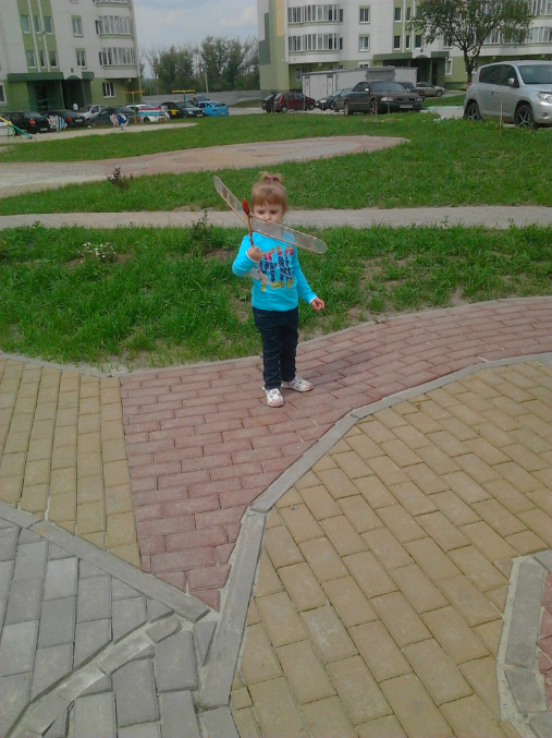 Увидела как мальчики пускали самолетик..и помчалась к ним...можа?можа?мальчишки не устояли...и дали нашей крошке самолет..