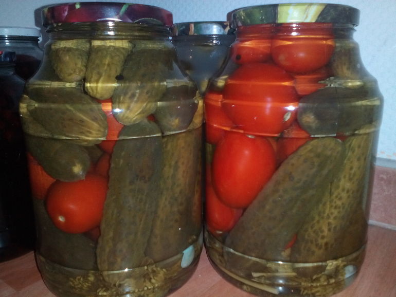 На 3 трехлитровые банки 5 кг огурцов.( я решила добавить немного помидор)