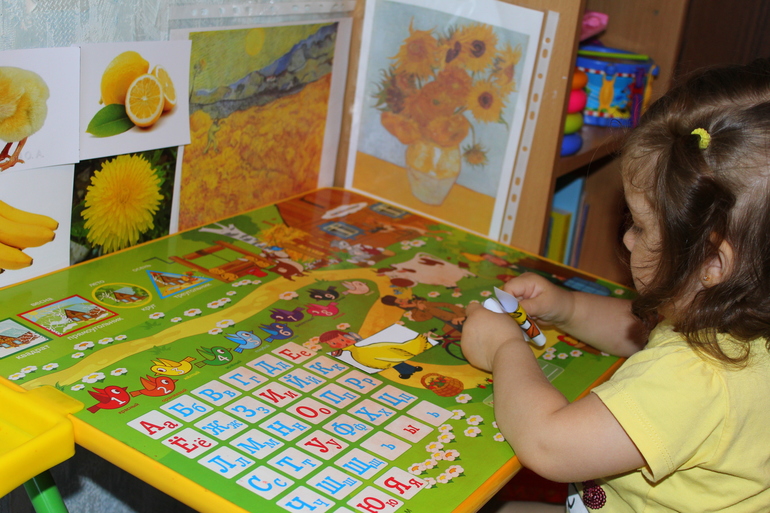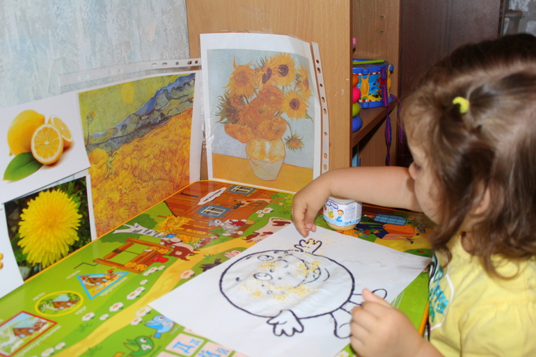 ЗанятияДолго, очень долго я не могла описать наш желтый день. Провели мы его еще 3 июля, уже тогда Настена начинала капризничать, а потом совсем начался кошмар... температура днем и ночью, целыми днями ни на шаг отойти от нее не могла...Но теперь все позади! Вчера хотела продолжить наши занятия, но нашла более-менее подходящую квартиру и началось.... поиск денег, агенты, встреча с хозяевами... Два дня как белка в колесе, дома все вверх дном... Квартиру сняла, через неделю приезжает папа и будем переезжать.
