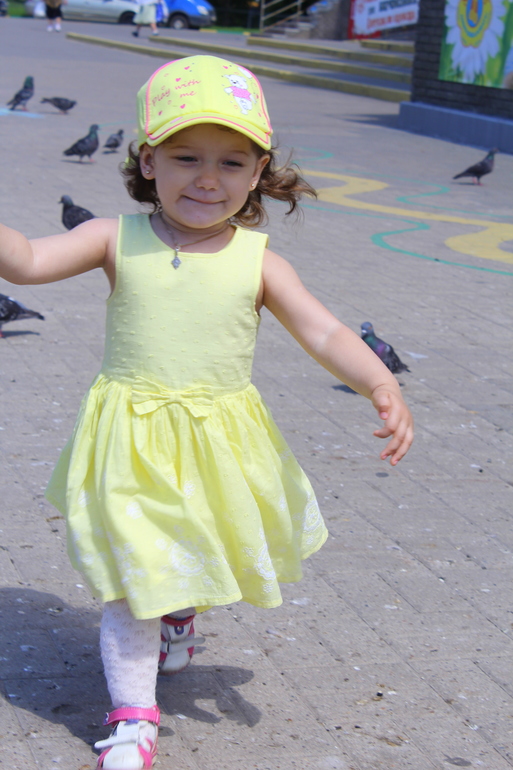 Кстати, Настена спросила у меня, что это за пятнышки на брусчатке?))) Я сказала , что это птички накакали...Все! Больше мой ребенок не мог там гулять, после каждого шага она задирала ногу вверх и проверяла, не остались ли эти какашечки на ее подошве))) пришлось срочно ретироваться на детскую площадку, а там мальчишки играли в футбол, Настена, не долго думая, присоединилась к ним и старательно путалась у всех под ногами, пытаясь забить гол)) Еле уговорила ее сначала потренироваться, прежде чем "выходить на поле")))