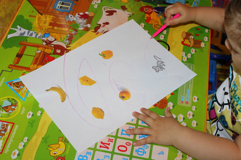 Дальше было задание провести мышку к сыру. Сыр Настя показала, а когда я дала ей карандаш, она просто все закалялкала