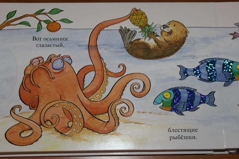 Книга хит! Зоопарк!!! Очень советую! Замечательный пост написала Misago, благодаря ей я и приобрела эту книгу! Иллюстрации потрясающие, с чувством юмора у художника отлично) А липкие щупальца осьминога просто покорили Настену)