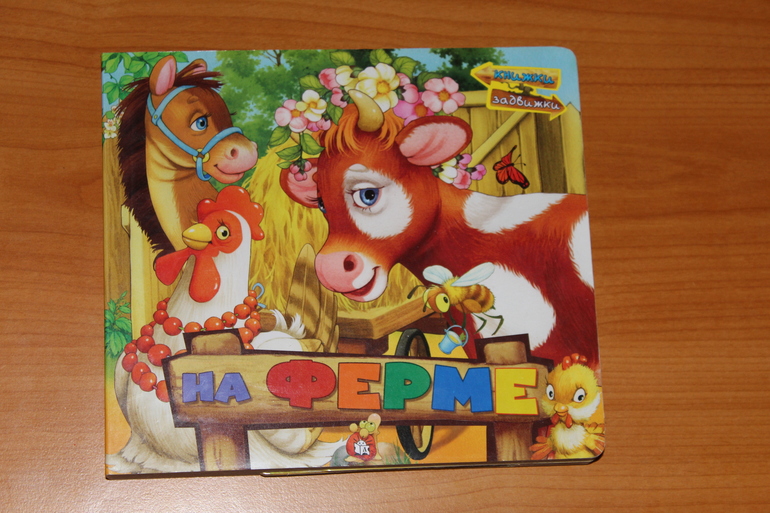 Книжка с окошками "На ферме" очень нравится! Отличное качество, просто не убиваемая))) Окошки - задвижки из плотного картона, такого же, как и странички.