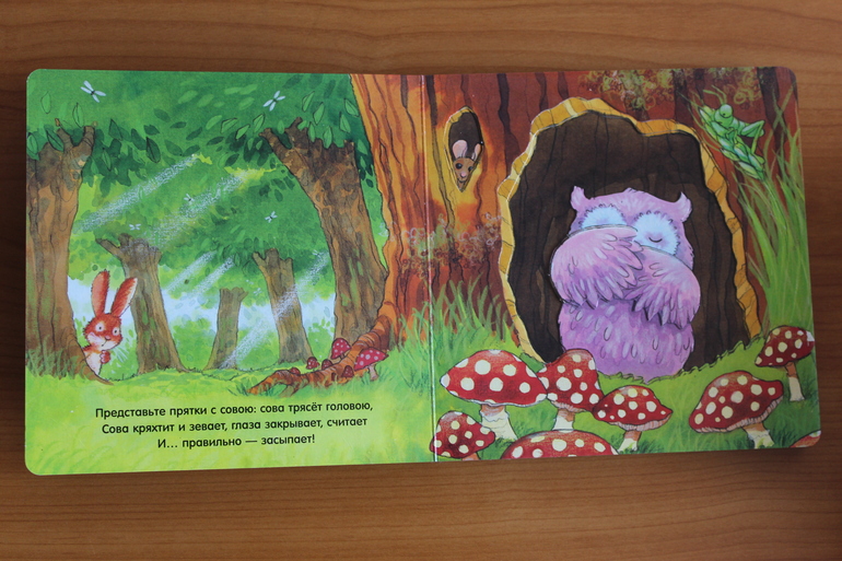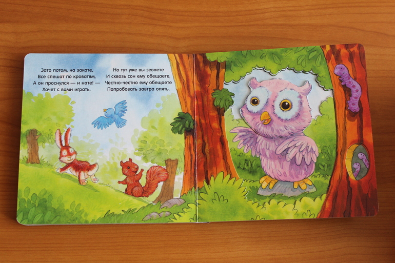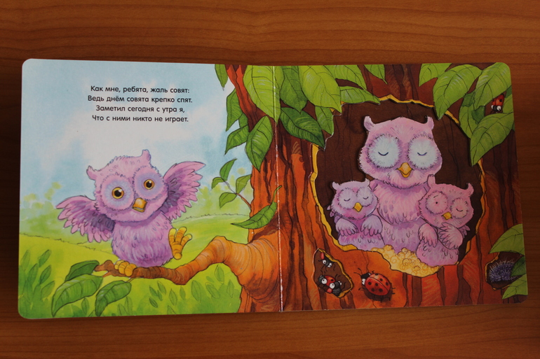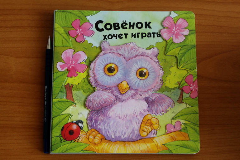 Книга Совенок хочет играть вызывает двоякое ощущение... Всего 4 разворота... мало... но, рисунки выполнены в виде многослойной аппликации, это вызвало большой интерес у Насти в годик с небольшим)))
