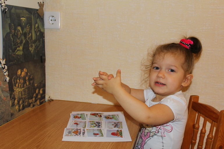 Трудности вызывали картинки, где изображено сразу несколько ребят, Настена все время их путала... но с каждым разом у нее получалось все лучше) и она кричала УВААА!!!! и хлопала в ладоши)))