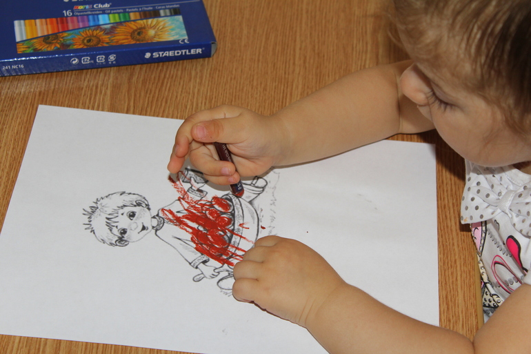 Начали занятие с просмотра картин, я подробно рассказывала и показывала, что на них изображено. На мое удивление, насте очень понравились картины, не смотря на очень темные тона.