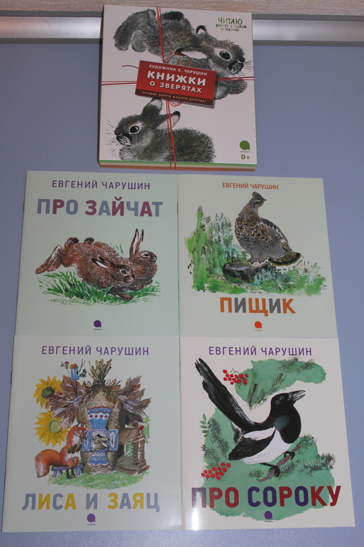 Так же 4 книжечки упакованные в коробочку, но уже формата А4. Бианки Лесные сказки тоже нам на вырост, предполагаю, что не раньше чем с четырех лет их лучше читать. Художник тоже Чарушин, думаю, этим все сказано.