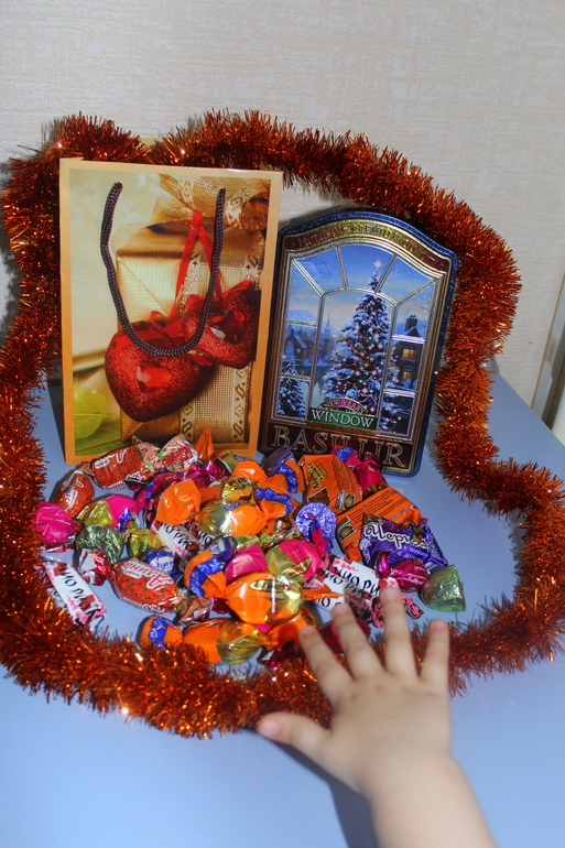 Очень ароматный чай и гора вкуснющих конфет!!!! Весь вечер чаевничали всей семьей!!!