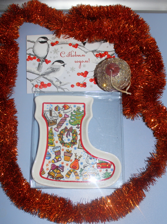Вот сколько всего! Теперь у меня есть новогодняя игрушка из Великих Луков и Гусь висит из Москвы! И мне это так нравится!!!!!! А игрушка от Алены не обычная какая-то! Тяжелая! Ален, она из глины?