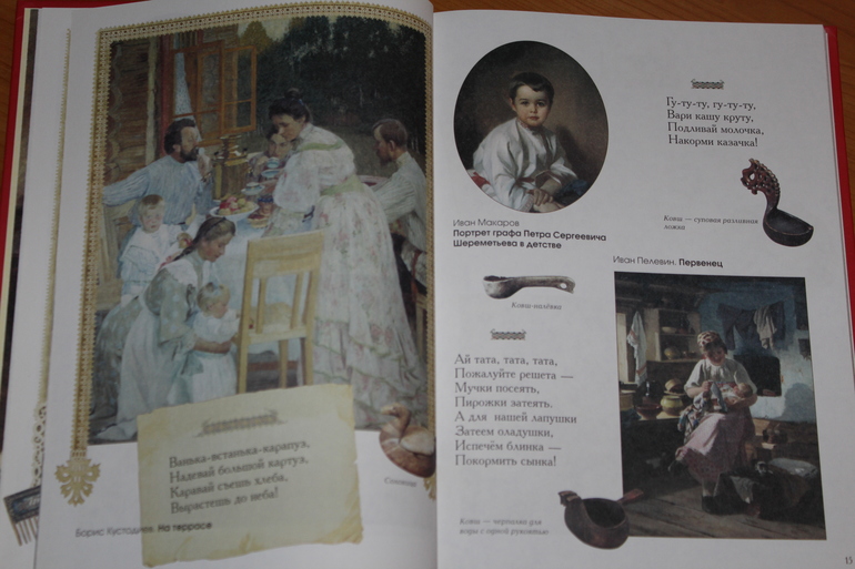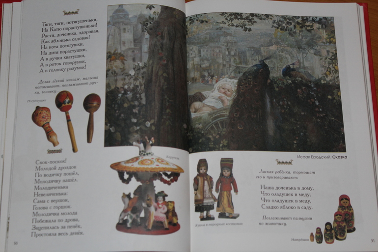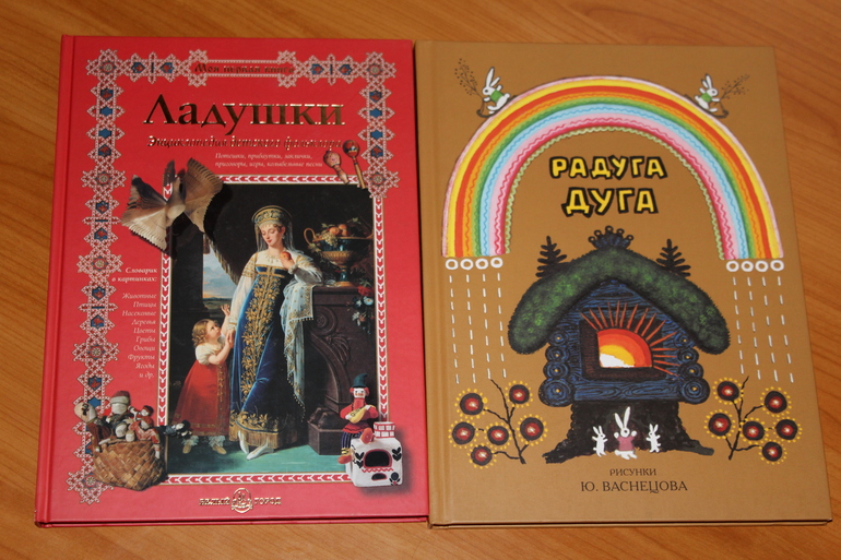 Потешки и прибаутки - это волшебство! Я конечно сужу только по своей дочке, не знаю как у других, но очень интересно было бы узнать. Так что расскажите, пожалуйста, любят ли ваши детки потешки? Читать я их не могу, только напеваю. Настена слушает очень внимательно, они ее успокаивают. Если ударится, или устала и капризничает, я ее прижимаю к себе и начинаю напевать прибаутки из этих книжек, сразу тишина наступает. А еще рассматривать иллюстрации любим. В книгах Ладушки и Радуга-дуга очень много одинаковых потешек. Если выбирать одну книгу, то сомнений быть не может, конечно Радуга с шикарными иллюстрациями Васнецова. В Ладушках качество книги подкачало, но все равно любим её рассматривать.
