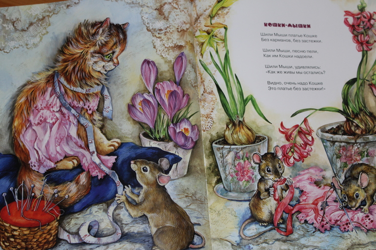 Любим и периодически достаем книгу с изумительными иллюстрациями Анны Зобнинской. Это же настоящие картины! Какие красивые кошки-мышки-цветы