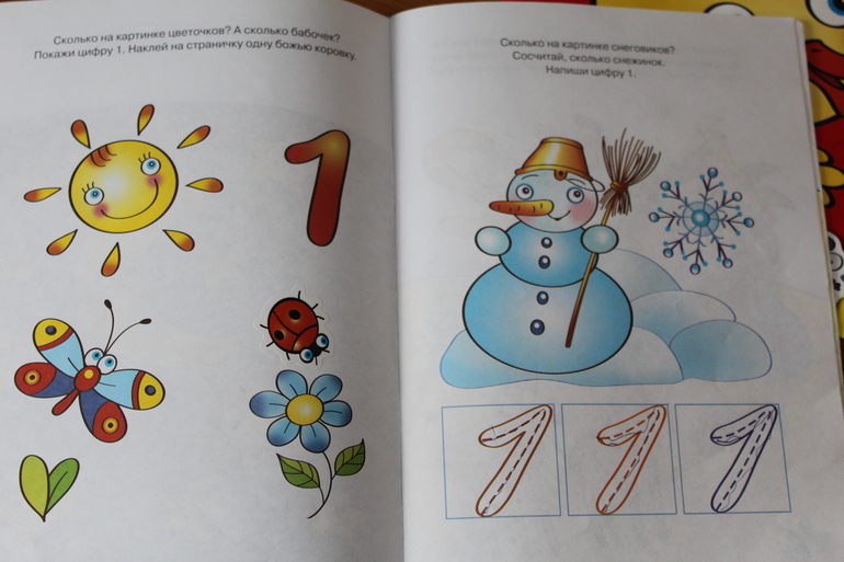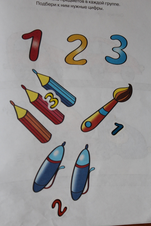 Следующая тетрадь Цифры и счёт очень нравится. Настя давно умеет считать до 10, в тетради задания до 3. Так что ей не составило труда их выполнить. Но дело в том, что она не знала как пишутся эти цифры. Теперь знаем, но до 3))