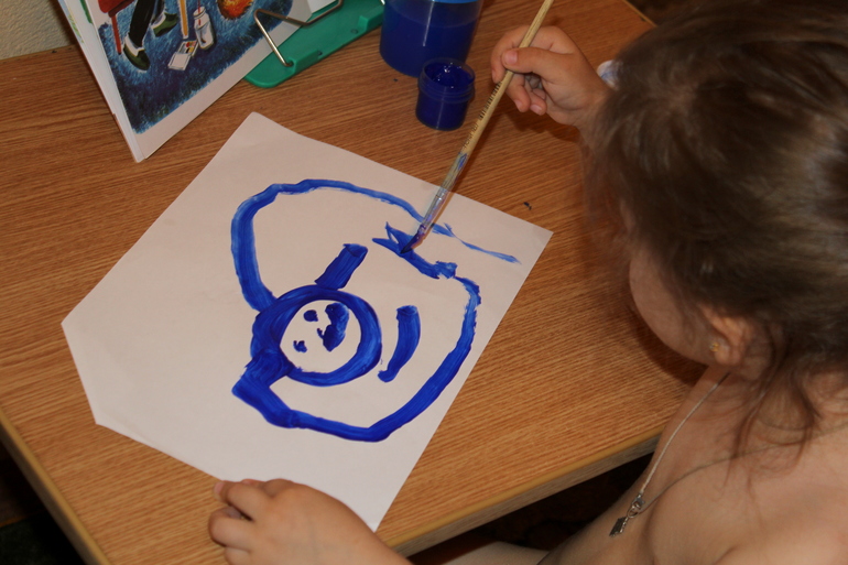 Изрисовала шесть листов синей краской и успокоилась) А стих очень любит.