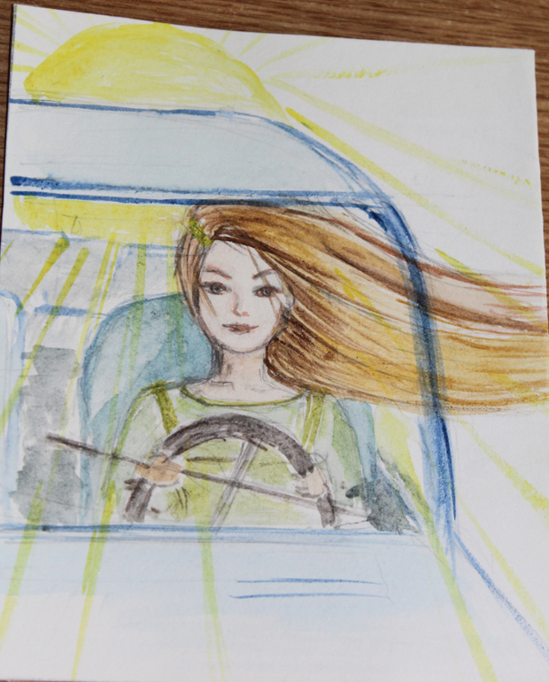 Третья бандеролька была от удивительной девушки Саши осень . Сашенька, как же я люблю твои рисунки! Огромное спасибо тебе, что нарисовала меня! Я повешу твои рисунки над своим столом и буду всегда ими любоваться! Только человек с тонкой душой может так точно почувствовать и понять другого человека! А твои волшебные девочки всегда жили в моей памяти, они такие воздушные, нежные! А теперь одна из них будет жить у нас, ура!!! Очень я ей рада! Жалко, что сфотографирована она на столе, ей срочно нужно погулять среди цветов! И встретить, быть может, жука пожарника, совсем такого, как на значке