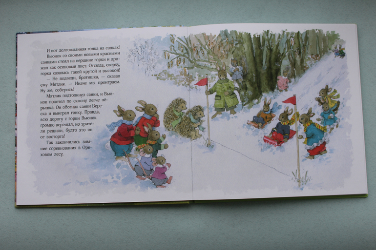 В этой ладненькой книжечке, с милыми иллюстрациями, небольшие истории про две кроличьи семьи. Дочка слушала с удовольствием, но хитом книга у нас не стала.