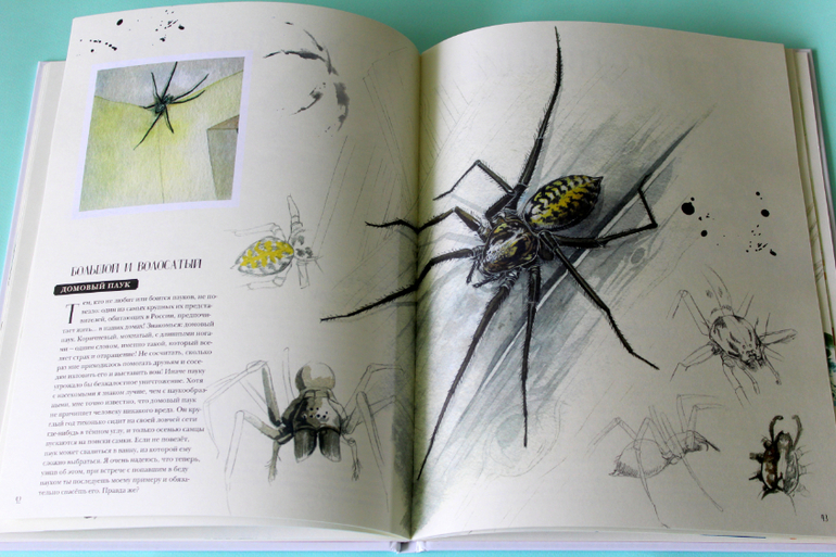 В книге есть два исключения, об этом автор предупреждает в начале книги, хоть книга и посвящена насекомым, но он не удержался и поместил в неё паука и многоножку, уж очень хотелось про них рассказать).