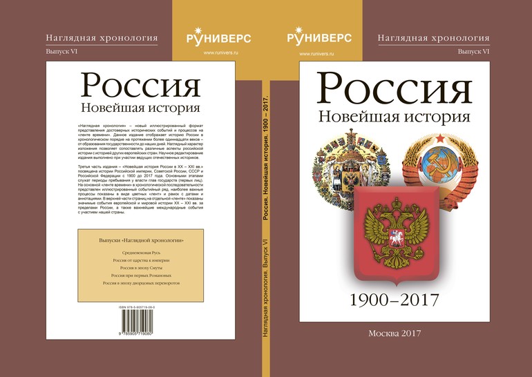 Третья часть уникальной серии «Наглядных хронологий» - «Россия. Новейшая история. 1900-2017» посвящена истории Российской империи, Советской России, СССР и Российской Федерации с 1900 до 2017 года. Основными этапами служат периоды пребывания у власти глав государств (первых лиц).