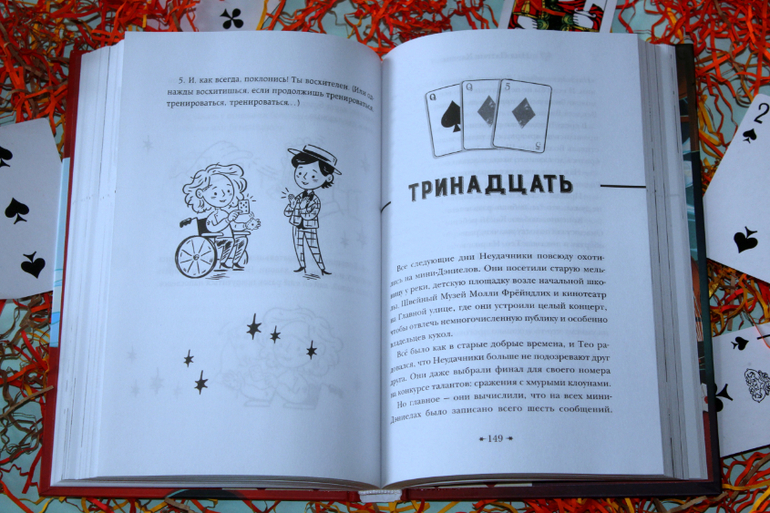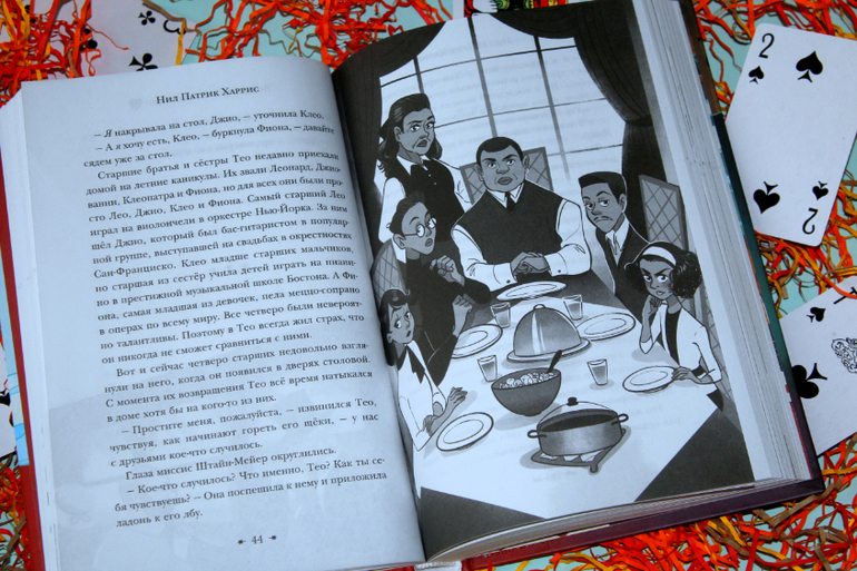 В этой книге на первый план выступает Тео - талантливый скрипач и начинающий иллюзионист. У него со всего света съехались братья и сестры. Все они стали известными музыкантами. Им не нравится, что их брат мало времени проводит с семьей и мало тренируется со скрипкой. Как же трудно ребенку сделать выбор. Он не может без друзей, но ему хочется найти себя. А кто он? Иллюзионист, или музыкант? Любят ли его друзья только за его способности, и не отвернутся ли от него, если он перестанет показывать фокусы? Да еще и семья просит выступить на конкурсе вместе с ними. И как выбрать между друзьями и семьей. А тут еще смятение в душе Тео наводит Эмили. Первая, робкая влюбленность.)