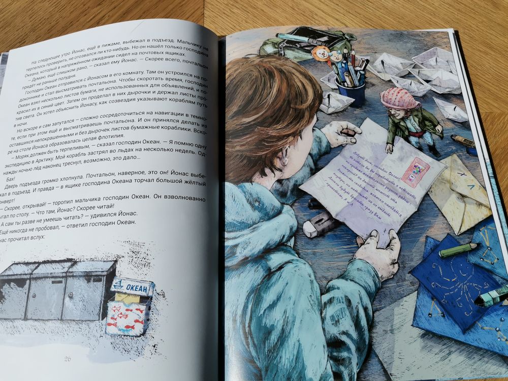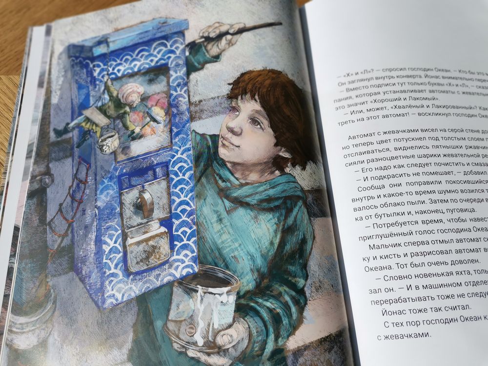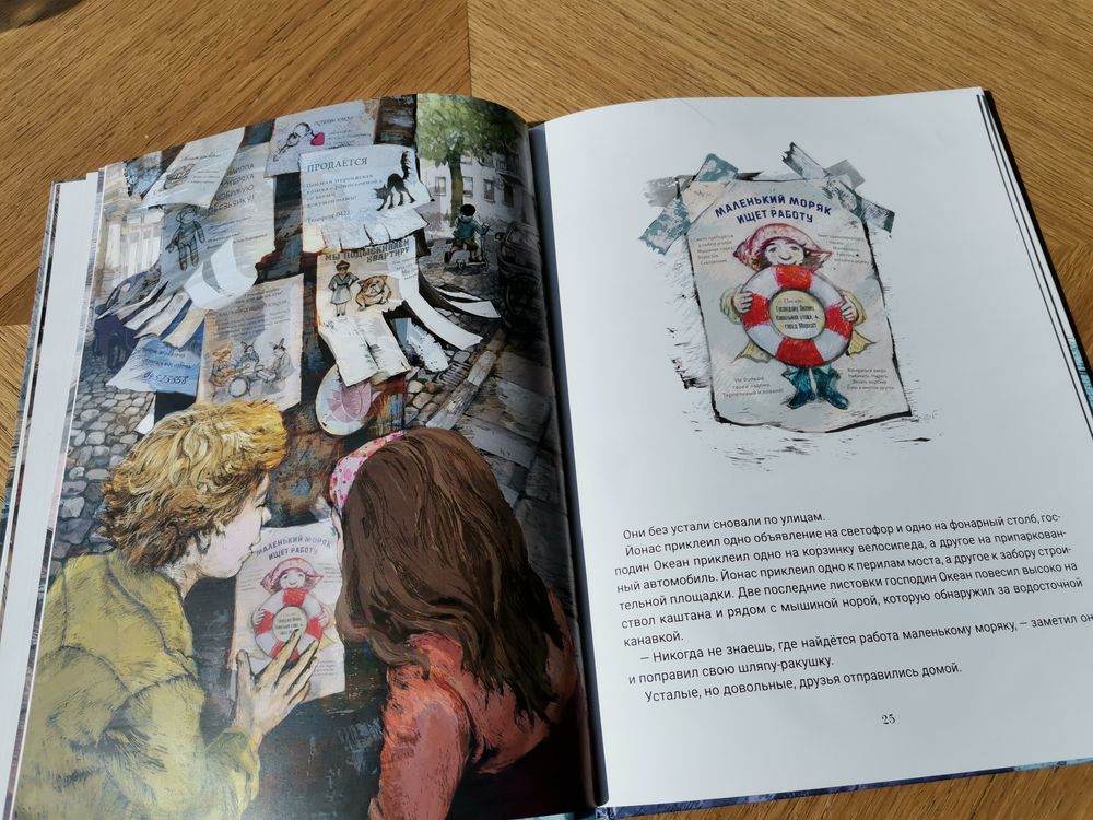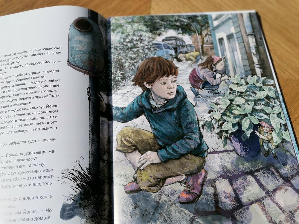 В этой книге мальчик с семьёй переезжает в новый город. Первым другом Йонаса становится маленький волшебный человечек))). Ростом он всего с ладонь, но душой и сердцем невероятно храбрый. Зовут его Океан! Всю свою жизнь этот маленький человечек покоряет морские стихии. В городе, куда переехал мальчик, Океан потерпел караблекрушение. За время вынужденной остановки эти двое стали неразлей вода. Но душа морского волка всегда рвётся в морские просторы. И мальчику, как бы тяжёло не было, но пришлось помочь Океану отправится в новое плаванье. Там, где настоящая дружба, нет места эгоизму. Океан уплыл, но обещал вернуться, а у мальчика появились новые хорошие друзья.