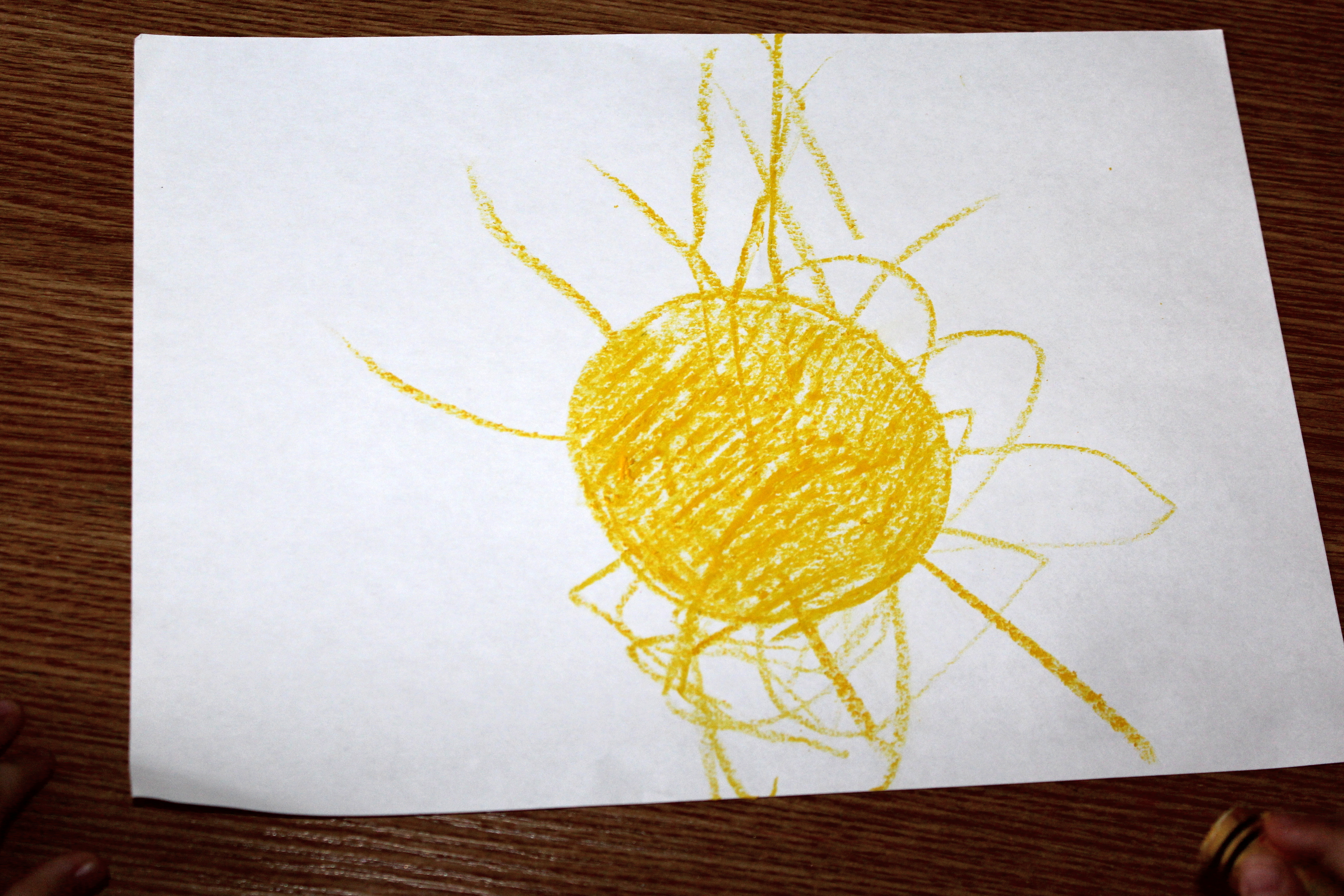 Настенька попросила карандаши, я быстренько нарисовала солнышко (опять))) и предложила ей нарисовать лучики))