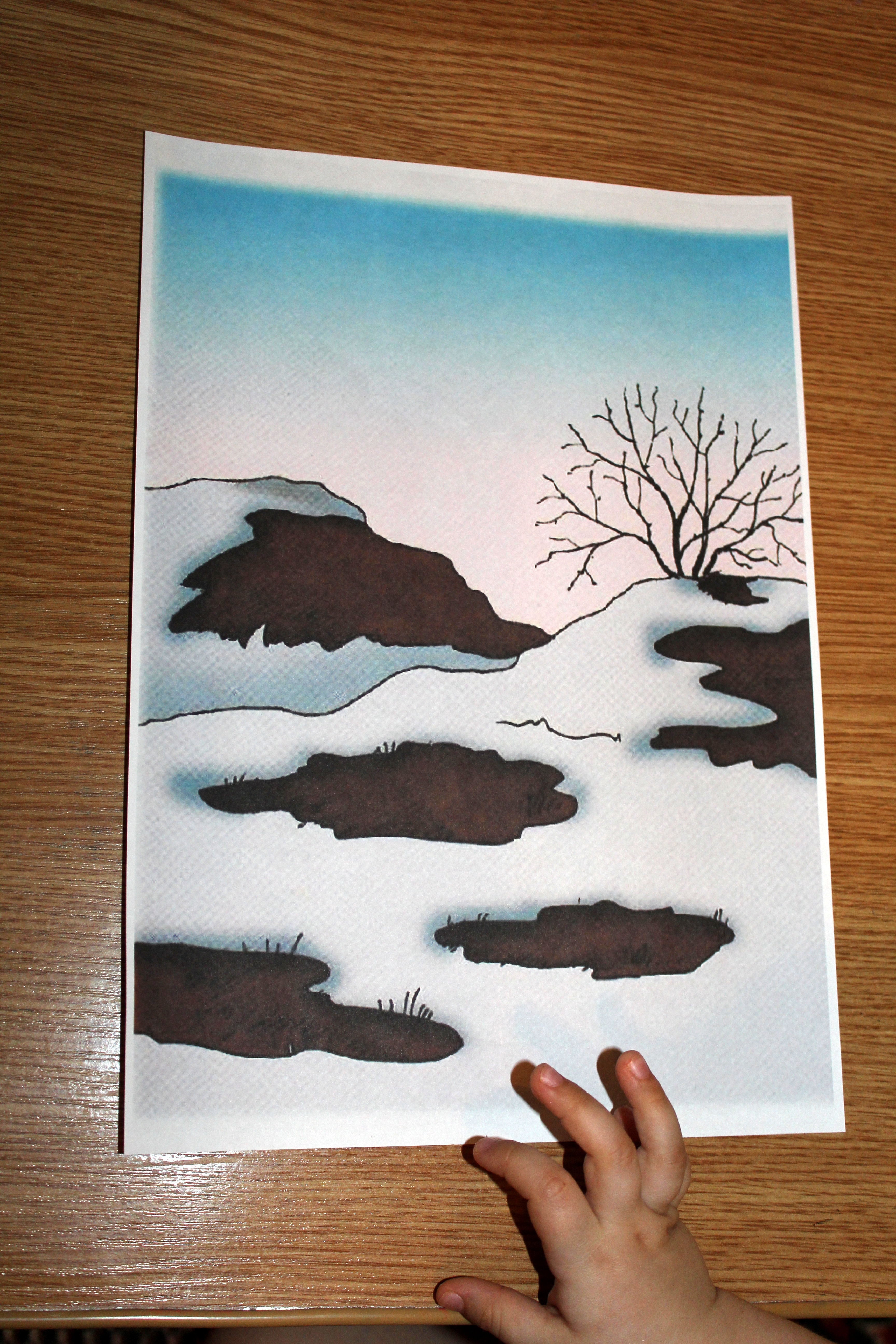 Потом я достала второй рисунок весенний и рассказала как тает снег в лесу, как природа оживает