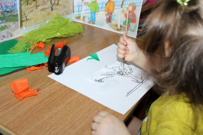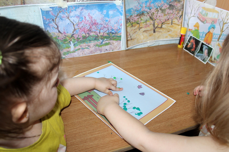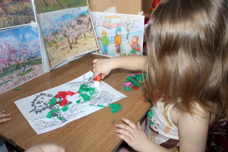 Насте очень понравились картины с весенними деревьями, я их повесила на стену и она в течении дня подходила и разглядывала их.