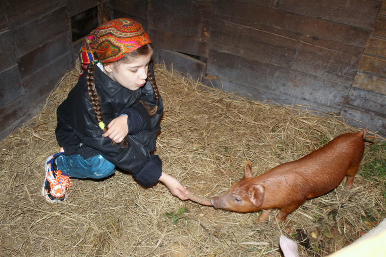 Бабушка с дедушкой завели в деревне хрюнделей. Впервые у моей дочи появилась возможность так близко пообщаться с хрюшками. Ну конечно же восторг и буря эмоций! 😁 Правда, сначала немного побаивалась, потом захотела пообниматься, от чего уже хрюши ее испугались)). В итоге, с помощью вкусняшек, удалось подружиться.)))