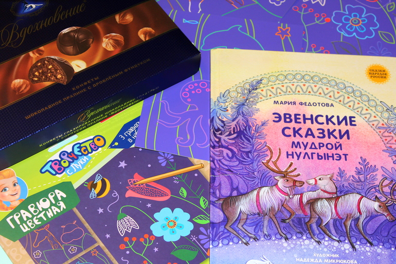"Эвенские сказки" просто чудо, как хороши! И иллюстрации и текст, всё прекрасно в книге! Настёна как увидела набор для творчества, аж запрыгала от удовольствия, как же она любит такие картинки, а тут такая красота, да не одна, а целых три штуки! Поехала с папой на дачу, первым делом картинки в рюкзак)). Ну а я в стотысячный раз нарушила свою диету. Только утром дала себе зарок, что больше сладкого ни-ни, ну разве можно устоять перед "Вдохновением"? Наелась, вдохновилась и давай отзывы писать)).