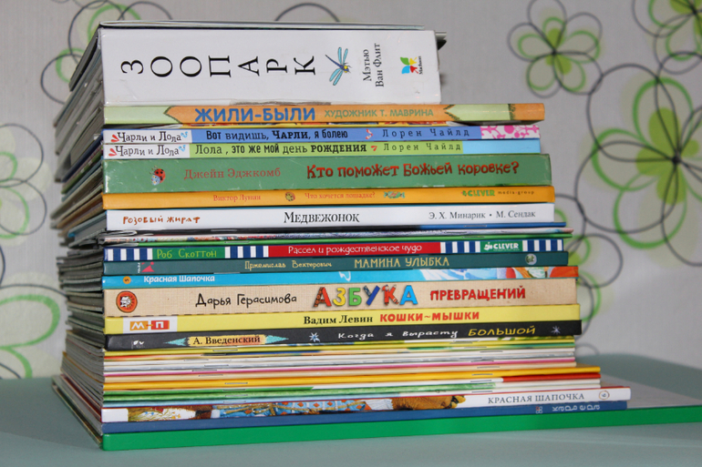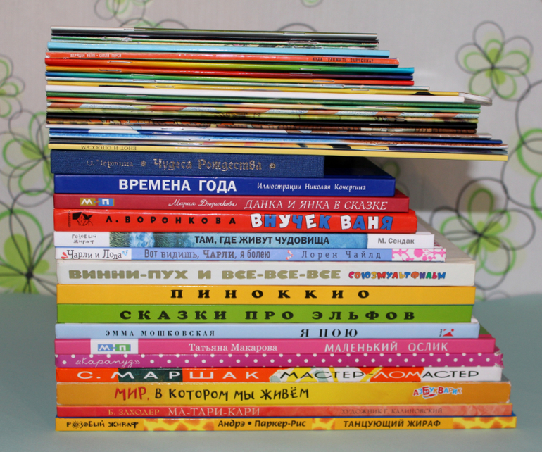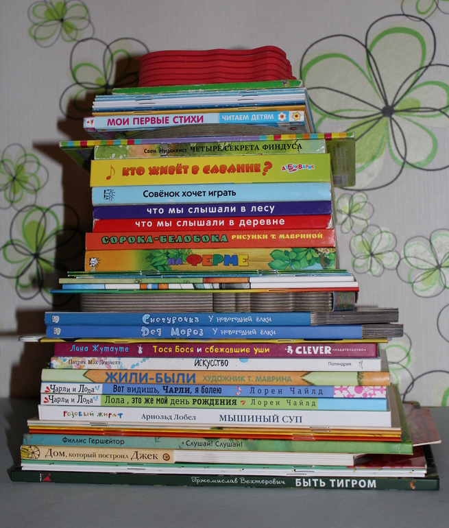 В стопочке есть более-менее объёмные произведения, но по-прежнему лидируют книги-картинки, книги-картонки. Поэтому призываю всех мамочек, не убирайте, не продавайте малышковые книги! Детки будут их читать самостоятельно снова и снова!