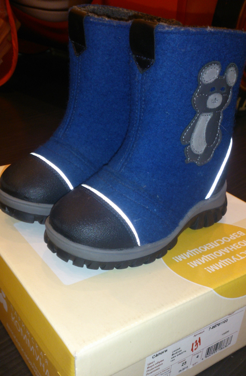 Очень толстый войлок самих валенок, внутри подклад - шерсть, очень теплые! Стелька толстая войлочная. Мыс и пятка - натуральная кожа. Очень добротные валенки! Покупаем их уже не первый год. Войлок намного толще, чем у котофеев.