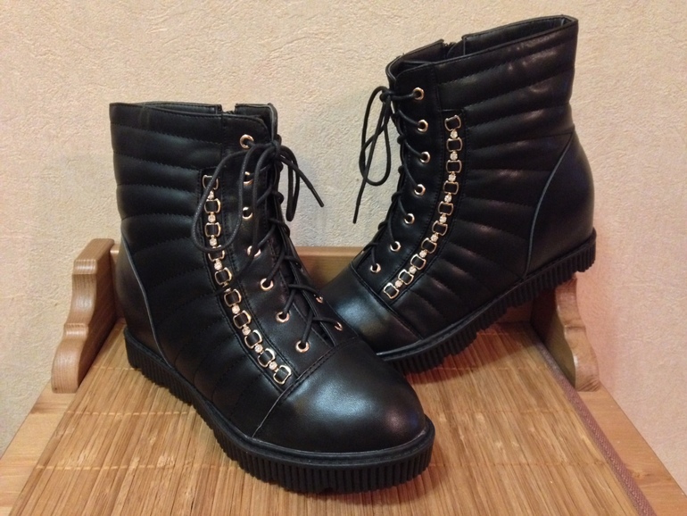 Ботиночки -сникерсы полностью на меху (плотная овчина), на шнуровке. Декорированы золотой цепочкой, с внутренней стороны молния.