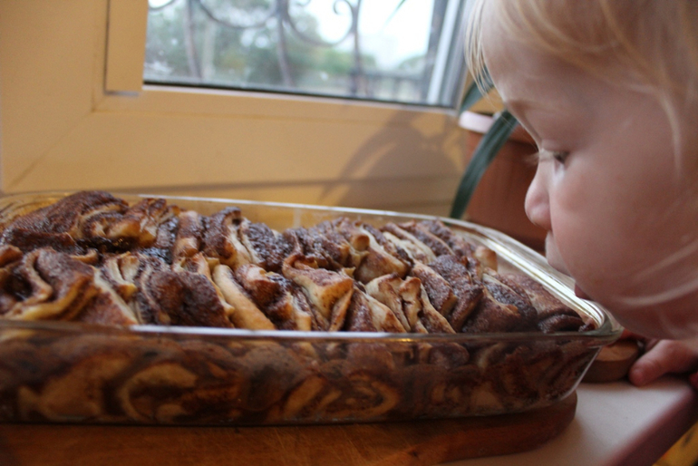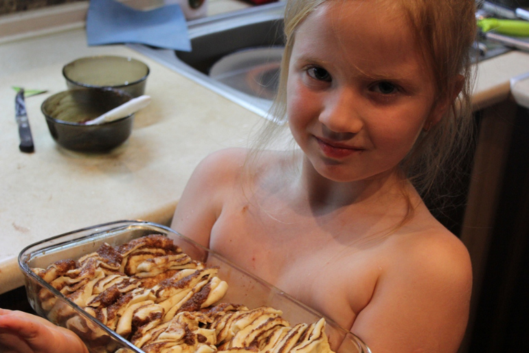 P.S. При приготовлении я выступала лишь ассистентом и слегка оператором. Мешала, раскатывала, размазывала начинку, резала и складывала башенки Яна, 6 лет