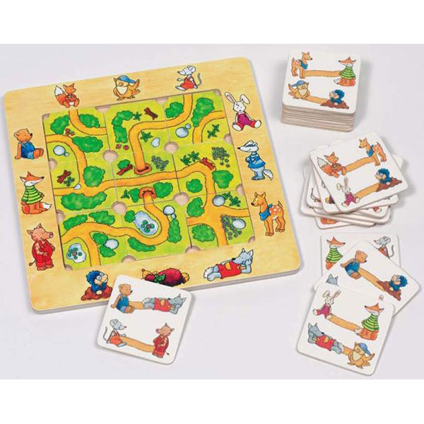 Настольная игра Колобок предлагает выбрать одно из 48 заданий, подразделяющихся на четыре уровня сложности. В каждом задании участнику нужно проложить тропинки от одного персонажа или места к другому, например: лиса должна попасть в лес, медведь к яблоне, заяц к грибу. И ни в коем случае не проложить дорожки между другими персонажами, например: волк не должен встретиться с дедушкой, а колобок не должен вернуться к бабушке.