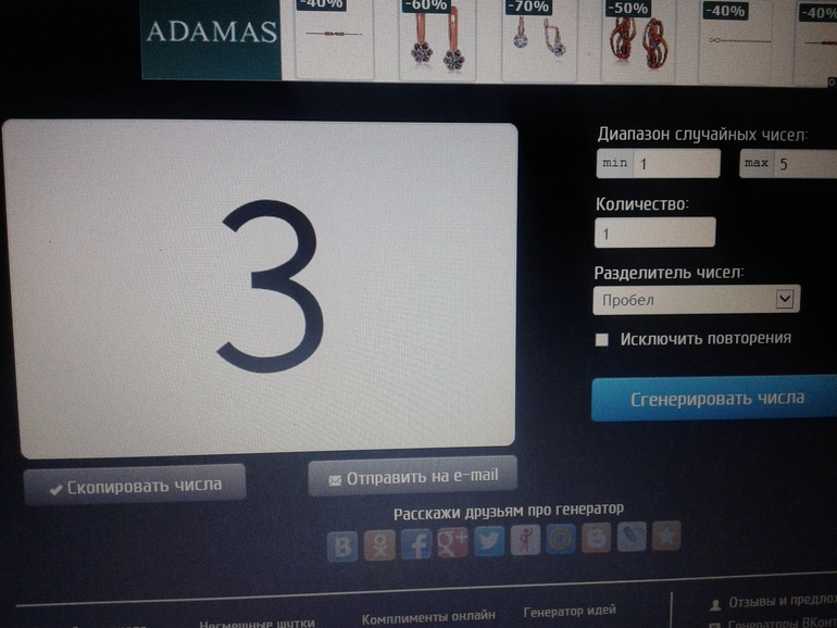 Разыграю. 30 сентября.Генератором случайных чисел.