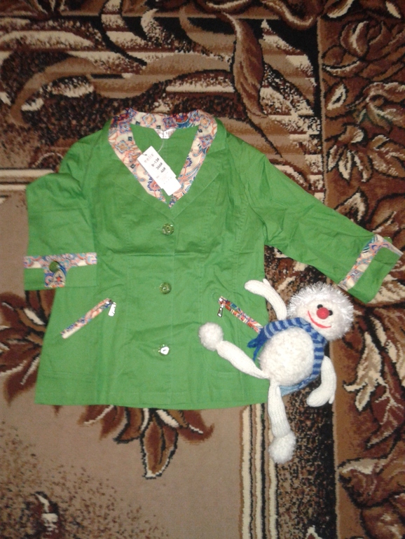 Летний пиджак р.46-48 (рукав 3/4) в цвет Елочки и охранник Снеговик (ручная работа). Жалко вязала не я -подружку попросила.....