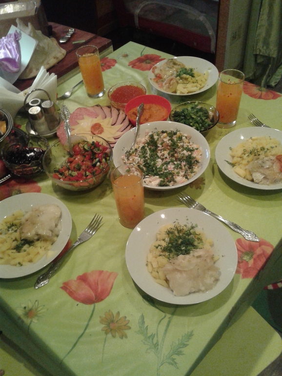 Приехала свекровь за 400км. А так как она глубоко верующая и стол был у нас скромный постный.Ну я бы сказала не чего и в пост можно кушать вкусно.